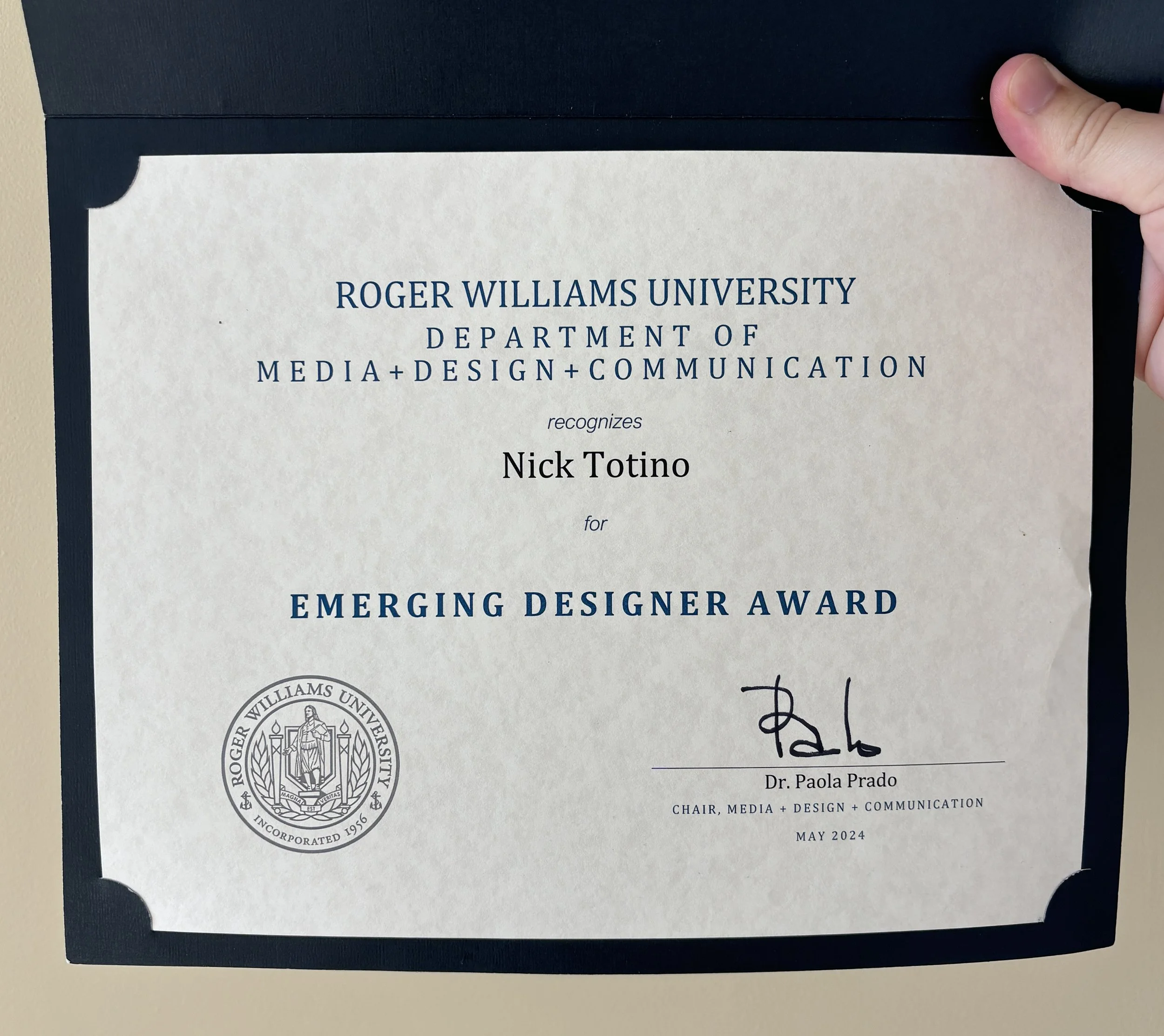 With my immense amount of design output in my senior year at Roger Williams University I was honored to receive the Emerging Designer Award for the design class of 2024.