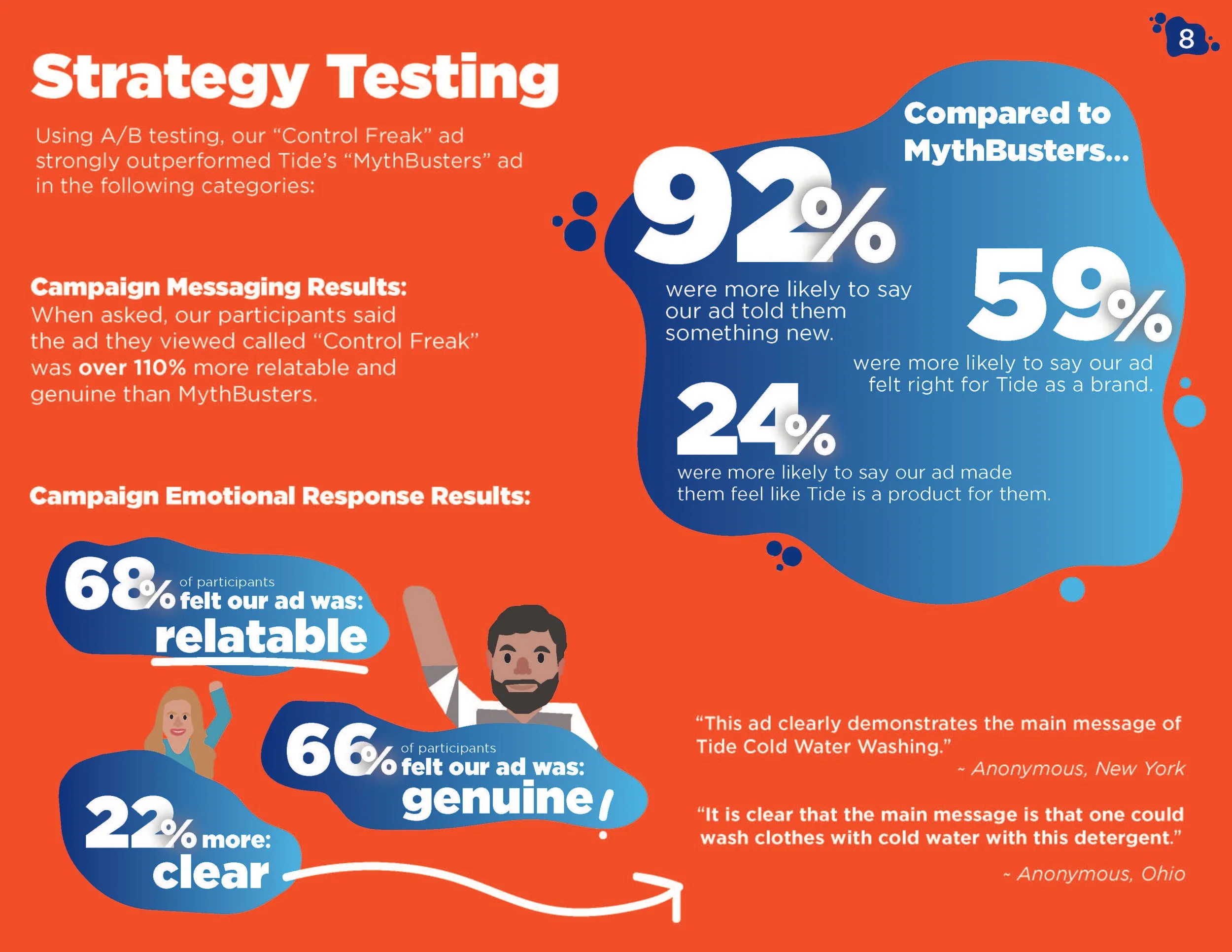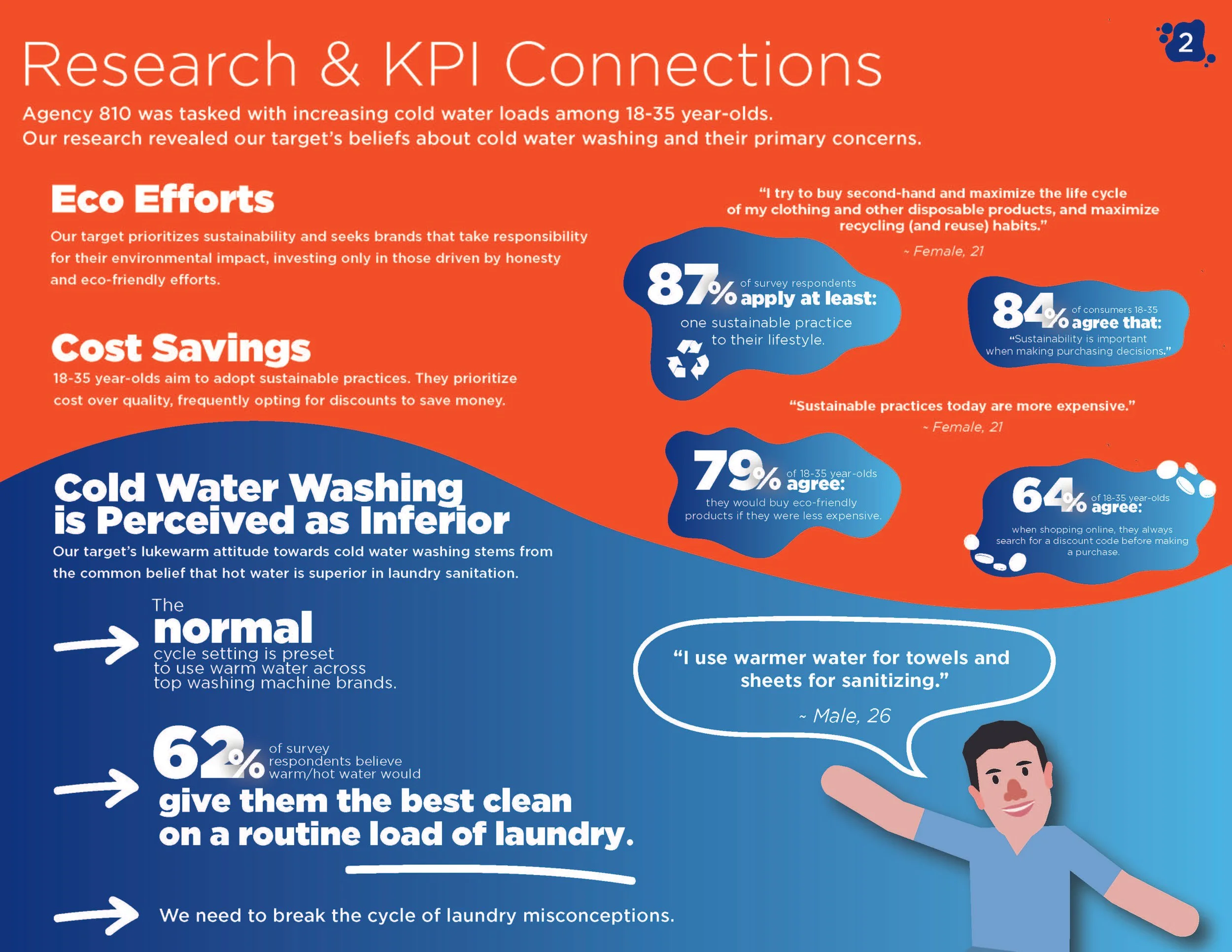 Did you know that cold water actually cleans clothes better than hot water? Did you say ‘No way?!’ I was afraid you might. That’s why when Tide tasked us to create a full-year advertising campaign to convert 75% of laundry loads to cold water washing, as well as boost brand sentiment among 18-35 year olds, we knew we had our work cut out for us.